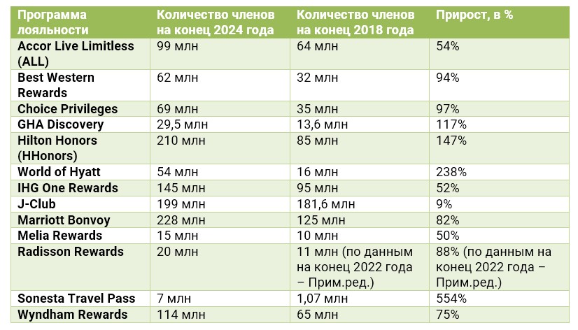 Так, Hilton Honors (HHonors) «нарастил» количество лояльных клиентов на 147%, до 210 миллионов участников. При такой динамике, он может превзойти Marriott, «подвинув» с первого места уже в 2026-м. Впрочем, Marriott и IHG также заметно «прирастают» в абсолютном выражении, ну а Hyatt, IHG, Sonesta демонстрируют наиболее быструю динамику «энроллов» относительно имевшегося размера своей лояльной аудитории.