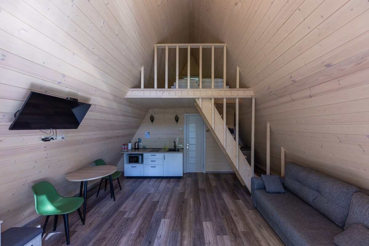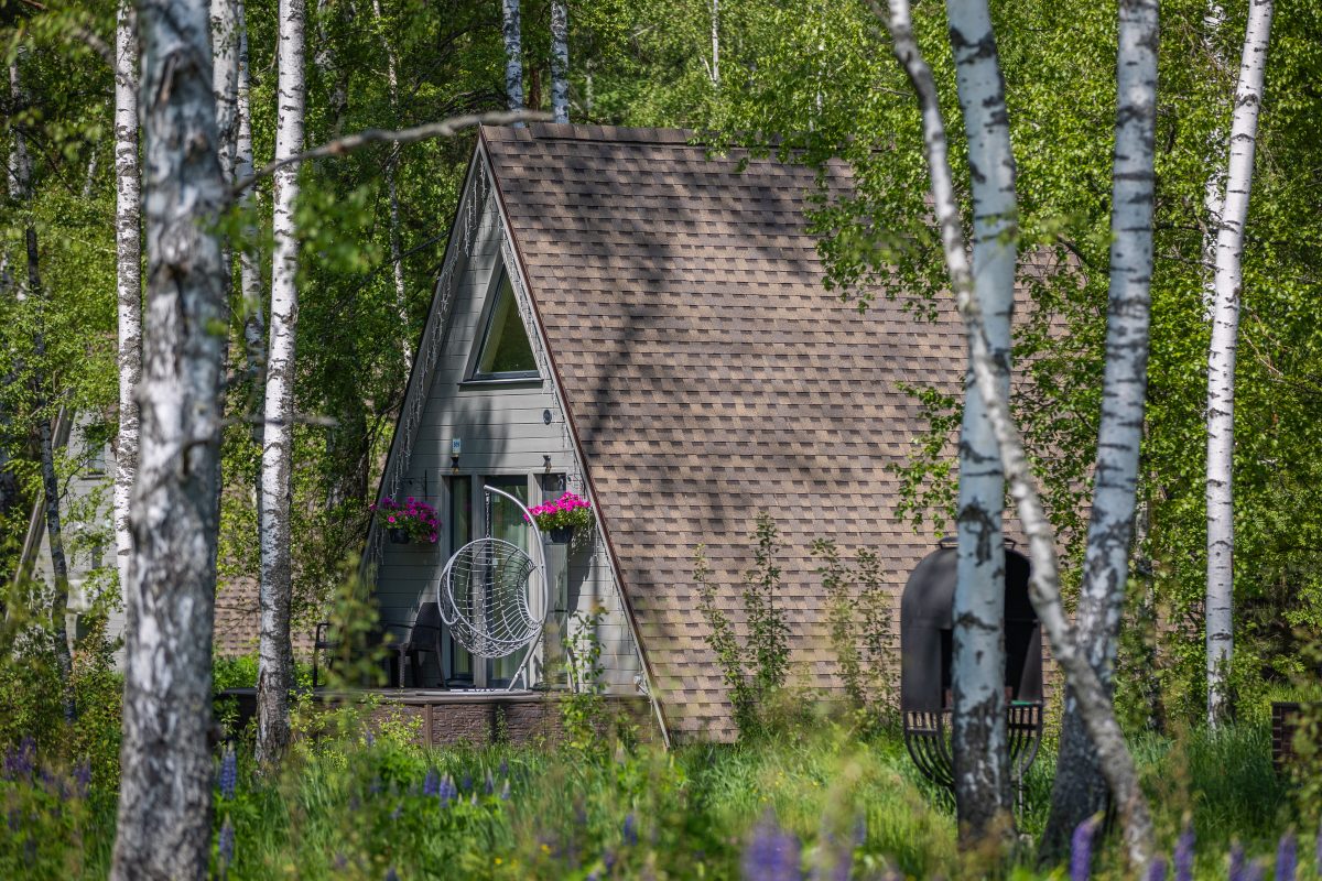 В отличие от советских прототипов, современные А-фреймы — всесезонные и с привычными горожанам удобствами. На фото — дома МАТИСС в экопарке “Поляны” — туристическом комплексе в Рязанской области, рядом с Мещерскими лесами и озерами. Номерной фонд представлен панельно-каркасными проектами ДОМ ТЕХНОНИКОЛЬ. При строительстве ставилась цель создать комфортные дома для гостей с минимальной нагрузкой на лесной ландшафт.