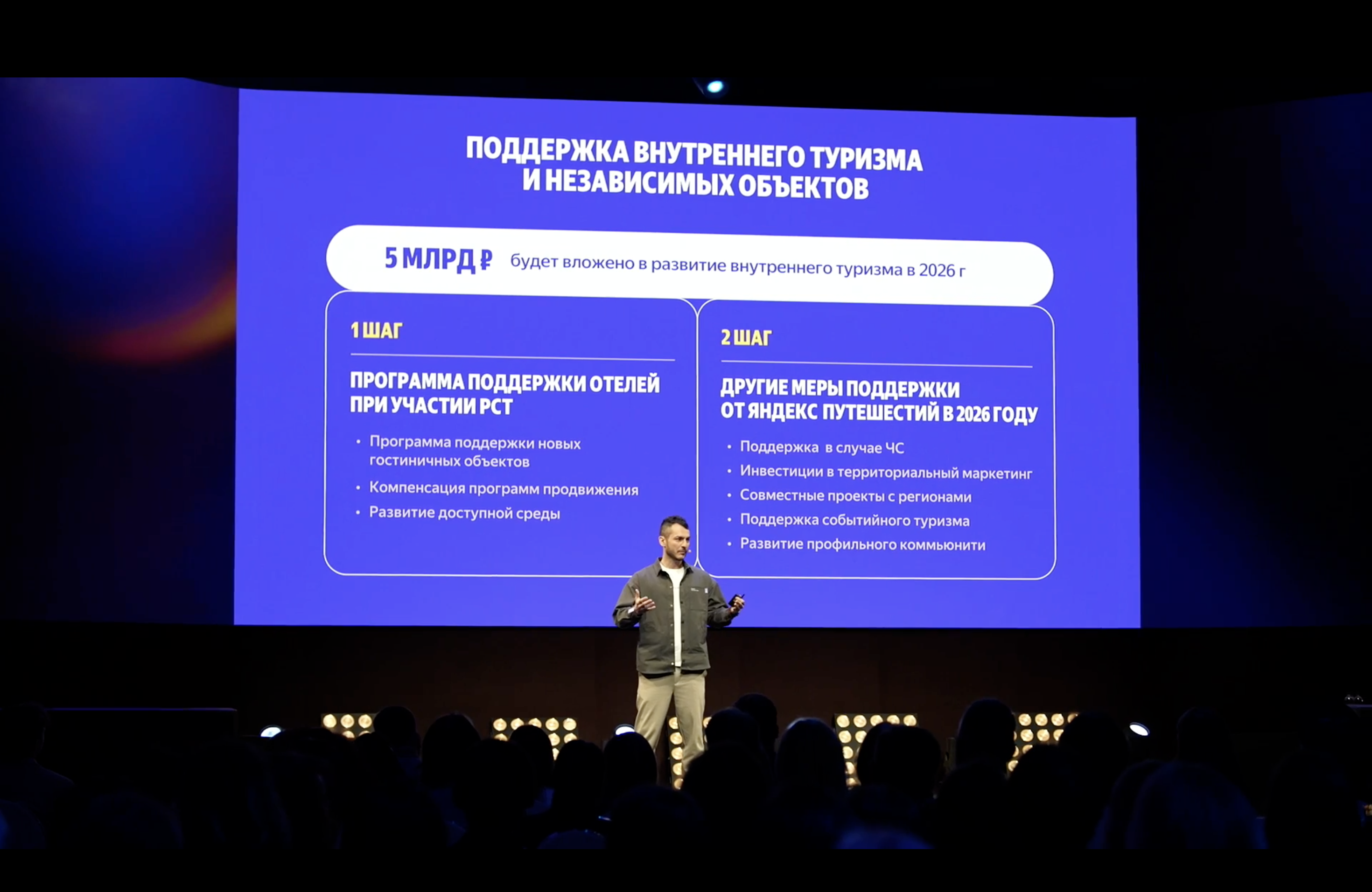 «Этот год не будет простым для туристической отрасли. Рынок не останавливается, а меняется и трансформируется. Гость становится более требовательным к качеству услуг, меняется конкурентный ландшафт для отельеров, ИИ проникает во всё большее количество процессов и скоро будет менять верх воронки продаж. При этом одна из важнейших задач нашего сервиса на этот год — развитие рынка. Мы хотим больше общаться с рынком, быть ближе к нему. И для того, чтобы это не оставалось просто словами , мы запускаем комплексную программу поддержки, в рамках которой собираемся вложить 5 миллиардов рублей в развитие внутреннего туризма в этом году. Мы делим ее на две части: первая это уже анонсированная ранее программа поддержки отелей совместно с РСТ. Вторая — дополнительные меры, которые мы также будем предпринимать в этом году. В частности, поддерживать регионы и наших партнеров в них в случае ЧС, инвестировать еще больше в развитие территориального маркетинга, будем больше инвестировать в событийный туризм, поскольку считаем, что это один из главных драйверов туристического рынка. А также развивать профессиональное комьюнити. Такие шаги, как мы верим, помогут справиться и нарастить загрузку отельерам», — рассказал Евгений Абрамзон.