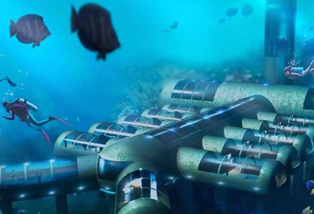 Американская компания Planet Ocean Underwater Hotel собирается построить первый в мире подводный отель, способный к передвижению. Как сообщает Fox News, он будет располагаться на глубине 30 футов (около девяти метров). Цена проекта — 20 миллионов долларов.