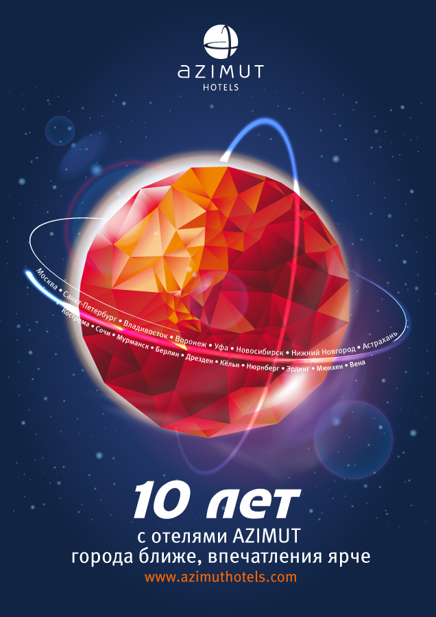 Бренд российской сети отелей AZIMUT Hotels в сентябре отмечает десятилетний юбилей. В 2006 году бренд объединил 7 отелей в 7 городах России. Сейчас сеть включает 25 отелей, это более 8000 номеров в России, Германии и Австрии. В ближайшие несколько лет планируется открытие новых отелей, в том числе выход на рынок стран ближнего зарубежья.