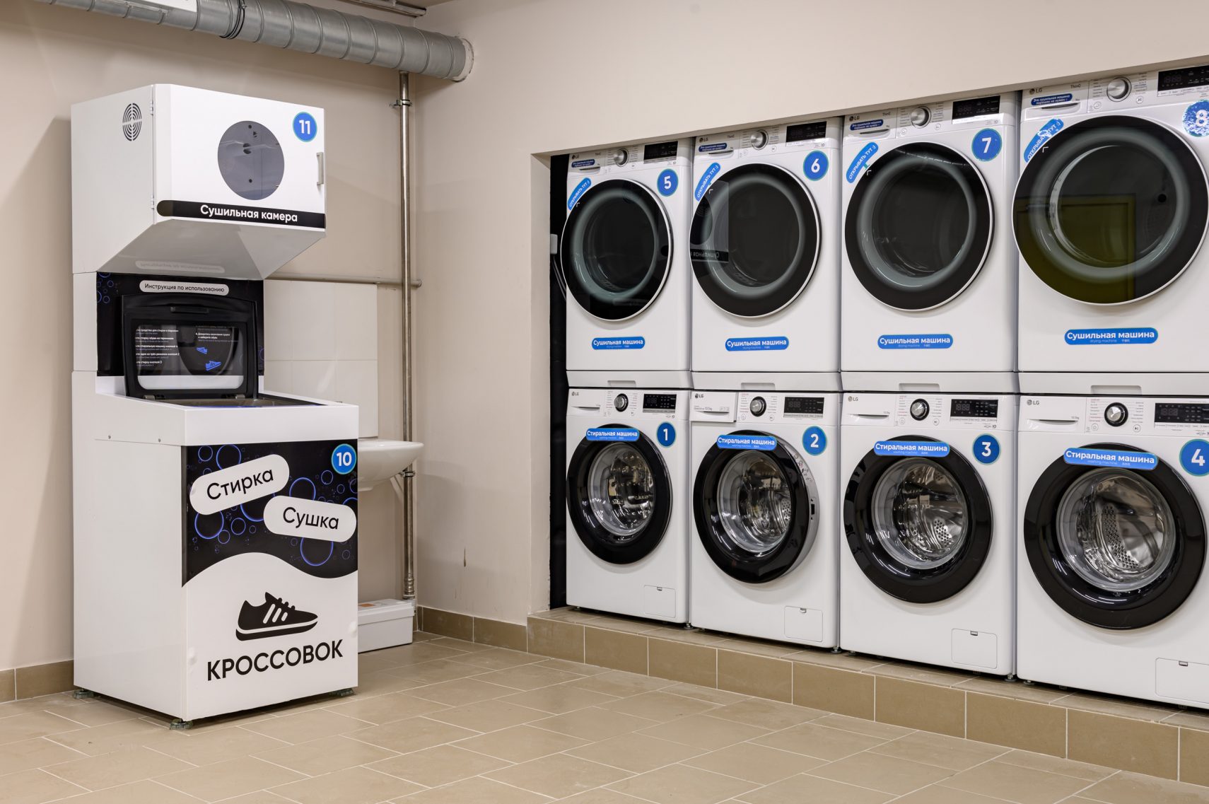 В апарт-отеле Well (расположен в шаговой доступности от метро "Балтийская" на набережной Обводного канала, Санкт-Петербург) тоже открылась инновационная эко-прачечная, где, по заявлениям, "техника адаптируется под тип ткани, обеспечивая глубокую очистку без повреждений". Прачечная разместилась на цокольном этаже апарт-отеля. Она оснащена по принципу well-being, и, как и в предыдущем объекте, имеет 4 стиральных машины и 4 сушильных шкафа. Отдельно - специальный агрегат для стирки и сушки кроссовок, где можно привести в порядок до четырех пар обуви за один цикл: столичные модники очень это уважают.