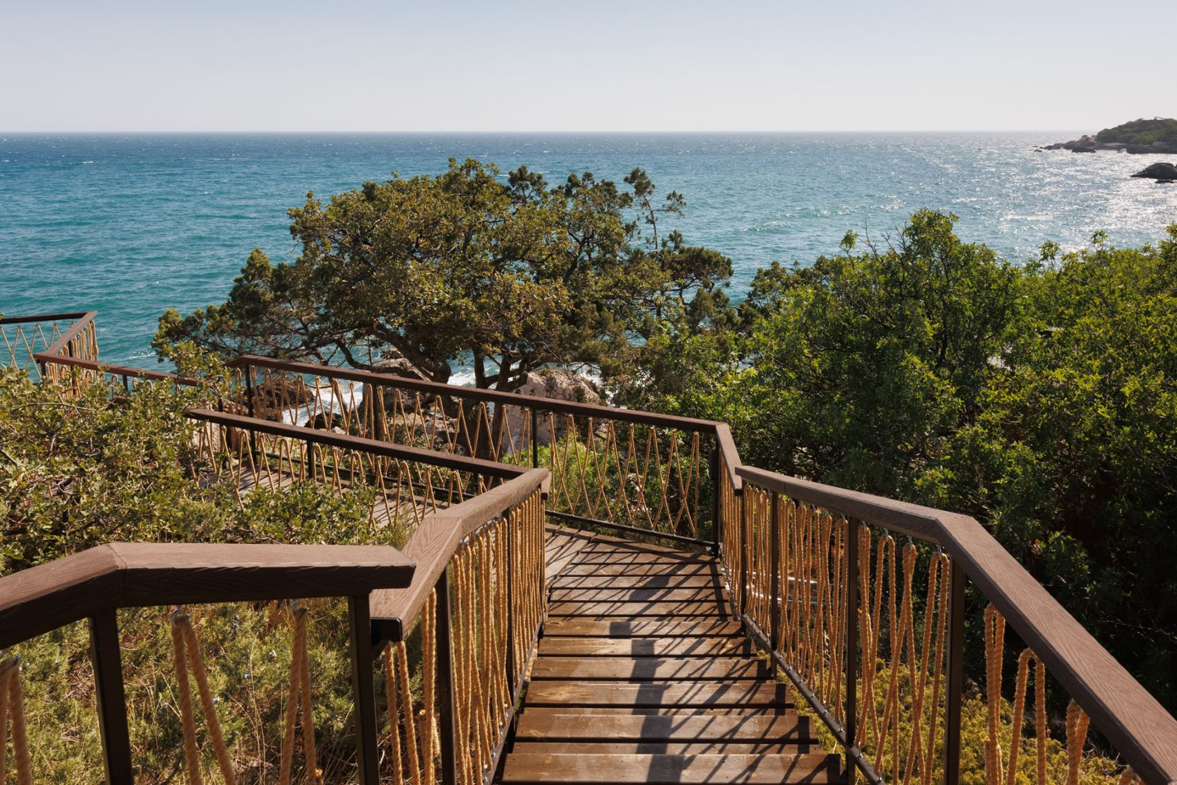 Гостиница появится прямо на известном туристическом маршруте - Большой Севастопольской тропе, по которой проходит 117 километров прямых и еще 100 километров второстепенных маршрутов. Отель круглогодичный, не сезонный. Участок, где расположен объект, - в аренде, все коммуникации и жилые некапитальные модули были расположены очень тщательно, с учетом экосистемы урочищ. Более того: перед началом работ пересчитали - и переписали - буквально все растения. Вмешивались в существующее по минимуму: например, использовали уже протоптанные тропинки и проложенные дороги. В общем, ни одно дерево не пострадало. Ну а модульные домики размещаются на сваях, как и сеть лестниц с переходами. Сточные воды откачиваются и увозятся на полигон. При этом в эко-отеле - все удобства, включая интернет.
