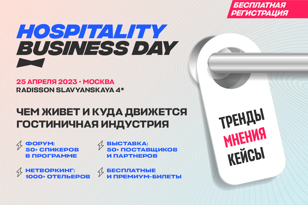 25 апреля в Москве в отеле Radisson Slavyanskaya 4* состоится Hospitality Business Day — большой бесплатный офлайн форум и выставка для отельеров.