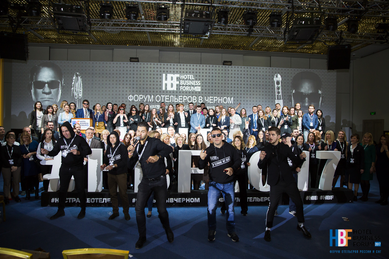 Hotel Business Forum - это сплав знаний, практики и командообразования именно в той пропорции, которая позволяет эффективно усваивать информацию и приемы, а также мотивировать участников на их внедрение в своих отелях. В этом году тематика форума была - "Отельеры в черном". Подобно герою Уила Смита из трилогии "Люди в черном", отельеры день и ночь стоят на страже высокого уровня сервиса своих объектов. Именно в этой атмосфере проходили командообразующие мини-ивенты в рамках форума, а также были пропитаны все декорации форума.