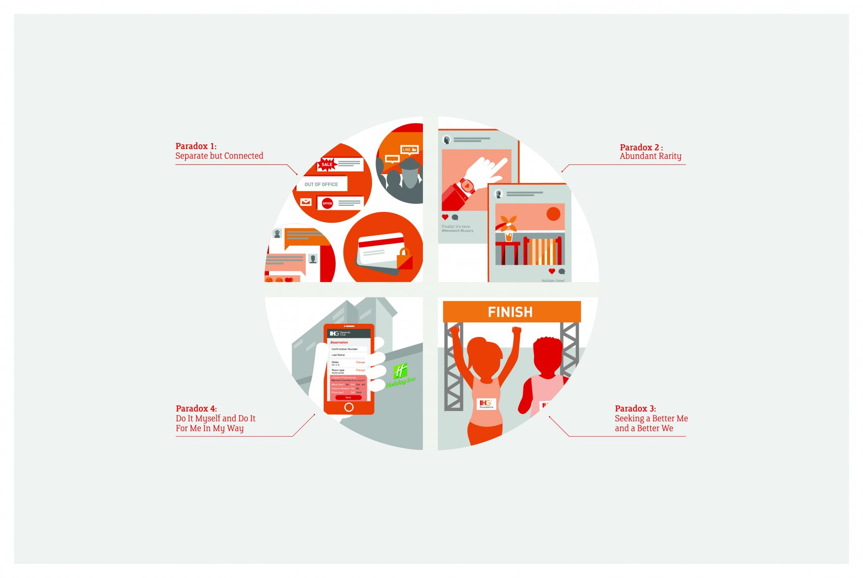 Исследование IHG выявило четыре парадокса, влияющих на процесс принятия потребительских решений в условиях динамичных изменений вследствие постоянного развития технологий. В такой среде гости не готовы на компромиссы и не хотят жертвовать одним за счет другого: они выбирают такие предложения, которые полностью бы отвечали их запросам.