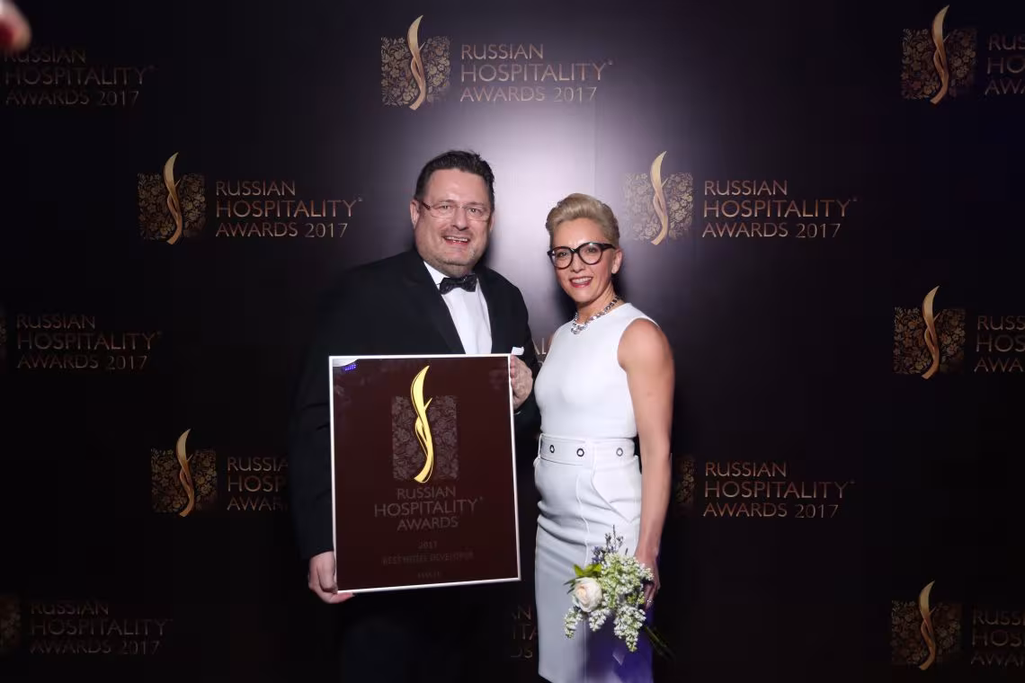 Финальным штрихом вечера стало присуждение звания генерального менеджера\управляющего года, работа которого заслуживает отдельного поощрения. На звание лучшего претендовало 34 отельера, из них: Зарыбницки Мартин, Сельков Дмитрий, Кюр Штефан, Юшкенас Дарюс, Егорова Ада, которая и стала обладателем высшей награды.