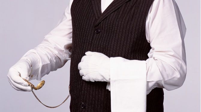 Дворецкие отеля отличаются не только безупречным знанием правил этикета и тонким чувством такта, в их обязанности также входит стирка и глажка вещей, упаковка багажа, натирка обуви, обслуживание за столом и многое другое. Умения и навыки, полученные ими в процессе обучения, позволяют нам предложить гостям индивидуальный сервис класса «люкс» и удовлетворить вкус даже самых взыскательных клиентов.