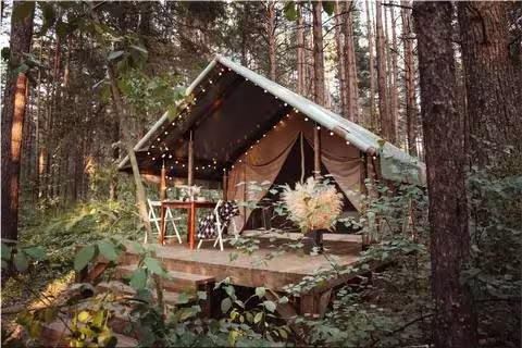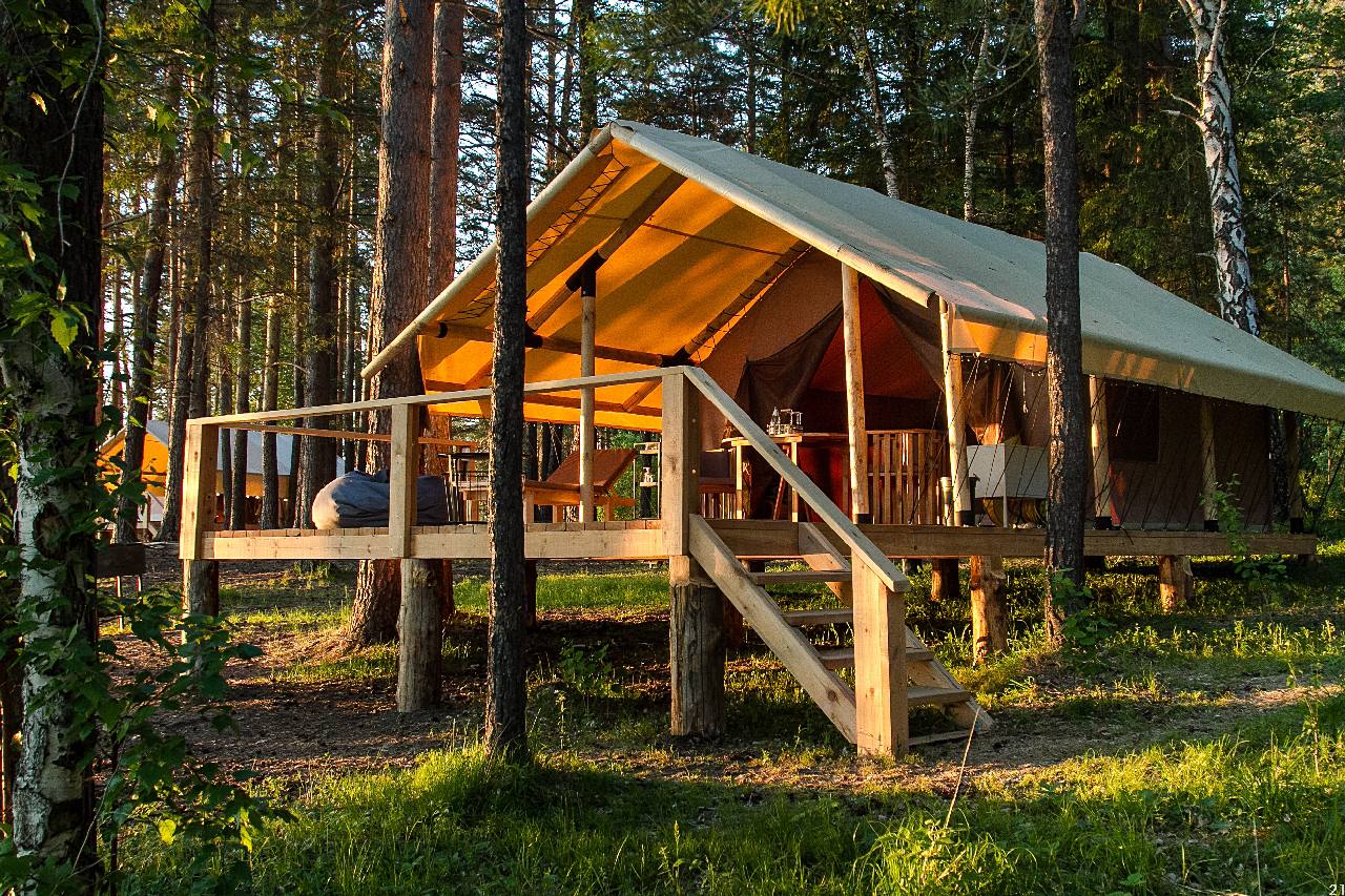На территории Glam Park также оборудованы места для кемпов (палаток с двухместным и трехместным размещением), которые установлены на специальных «пичах», что позволяет обеспечить защиту от насекомых.