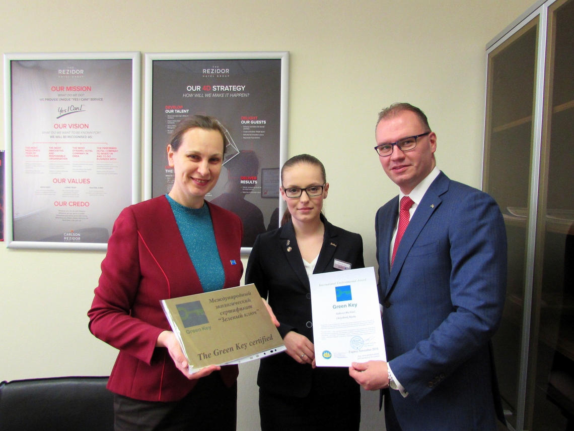5 ноября международный отель Radisson Blu Челябинск прошел процедуру сертификации и получил экологический сертификат Green Key (Зеленый Ключ).