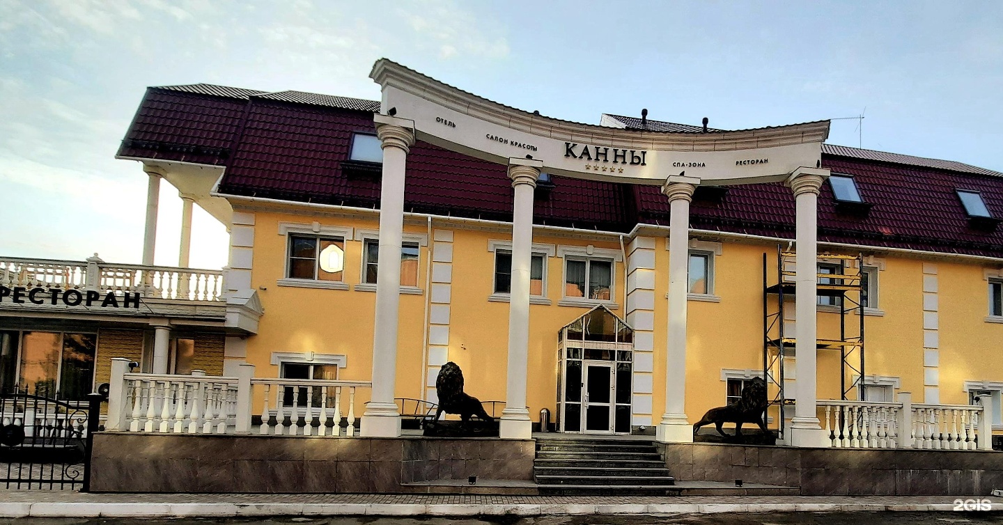 Отель расположен в городе Канск, на берегу реки Кан. Общая площадь лота - 1143 кв.м, площадь собственно земельного участка, на котором размещен отель, - 1374 кв.м. "Канны" - весьма небольшая гостиница, но с заявленной звездностью 5*. Тут 17 номеров, бассейн, сауны, ресторан, летняя терраса, конференц-площади, кальянная, есть даже своя прачечная. Территория огорожена и охраняется, гости "Канн" могут воспользоваться собственной парковкой гостиницы.