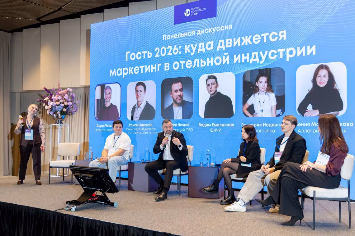 Кульминацией сессии стала панельная дискуссия «Гость 2026: куда движется маркетинг в отельной индустрии», которую модерировала Дарья Чекалова, коммерческий директор innStay Hospitality.