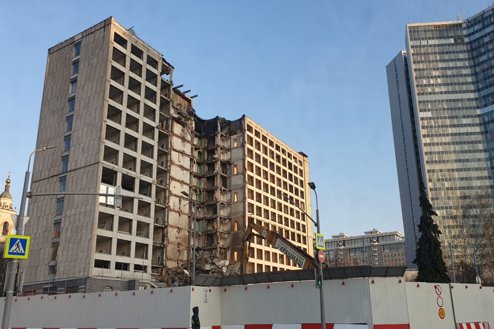 Демонтаж здания гостиницы "Мир", не действующей уже больше 15 лет, начался в районе Нового Арбата. Объект располагался рядом с Домом правительства России и со зданием СЭВ. Структура "Киевской площади" оценивает перспективы возведения на ее месте офисно-жилого комплекса, уточняет "РБК".