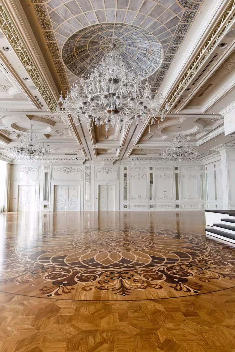 Благодаря элегантному интерьеру, выполненного в стиле ар-деко, отель по праву можно назвать уникальной находкой для приверженцев классики в ее современном прочтении. Геометрические орнаменты, глянцевые текстуры, лепнина, хрусталь и мрамор создают атмосферу роскоши и изящества. Центральным элементом отеля является величественная мраморная лестница, ведущая в банкетный зал Imperial Plaza. Зал, в свою очередь, предстает во всем своем великолепии: хрустальные итальянские люстры, витражи, высокие потолки и зеркала, расширяющие пространство.