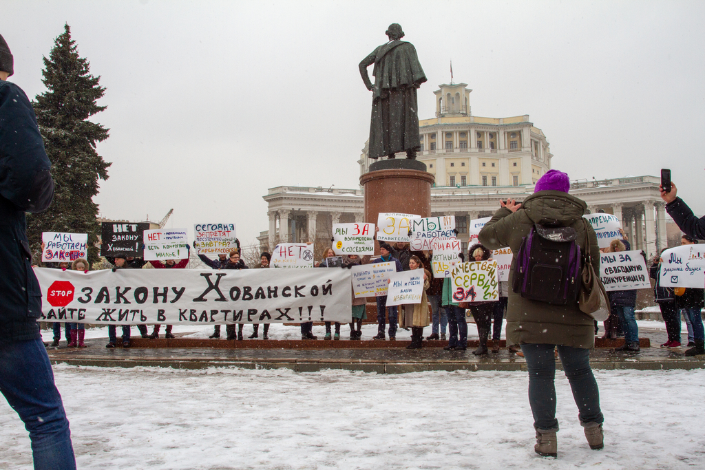 В Москве прошел пикет владельцев малых средств размещения против закона Хованской