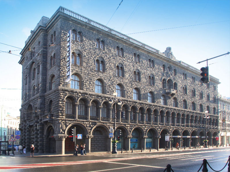 Когда дом Вавельберга строился, идеи касательно дизайна архитектор позаимствовал у венецианского палаццо дожей. В результате питерские остряки прозвали здание «Денежкино палаццо», тем более что в нем действительно располагались офисы банковских структур. Здание, в свою очередь, появился на месте двух трехэтажных домов, где жили художники – братья Берниковы. Финансист Михаил Вавельберг в бытность купил оба эти дома и тут же снес, после чего пригласил именитого и очень популярного в те годы архитектора Перетятковича для того, чтобы тот построил фактически дворец на углу Невского проспекта и Малой морской улицы. Строительство завершилось в 1912 году.