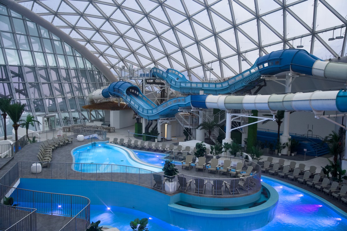 В аквапарке – самом современном и крупнейшем на данный момент в стране –17 аттракционов и горок, 18 бассейнов (четыре из них под открытым небом), две детские зоны и уникальную «медленную реку», работающую даже зимой при -20 °C. Аэрокосмические технологии, использованные при создании крыши в виде двух куполов, позволяют пропускать УФ-лучи и обеспечивать естественный загар круглый год. Каждый купол разделяет пространство на две зоны: релакс-зону с инфинити-бассейном (более подходящую, например, для пар, групп взрослых людей и т.д.) и видами на знаменитые завидовские закаты и активную «детско-семейную» зону с водными аттракционами. Для ценителей приватности предусмотрены шесть бунгало и четыре виллы с собственными бассейнами и панорамой на реку и лес: эти vip-зоны, которые можно арендовать под семью, небольшую группу и т.д. В ближайшее время в аквапарке откроются семейный бар, снек-бар, VIP-бар, мокрый бар в бассейне, а также два ресторана – в формате free flow и a la carte. Также есть возможность «закрыть» корпус аквапарка под проведение мероприятий.