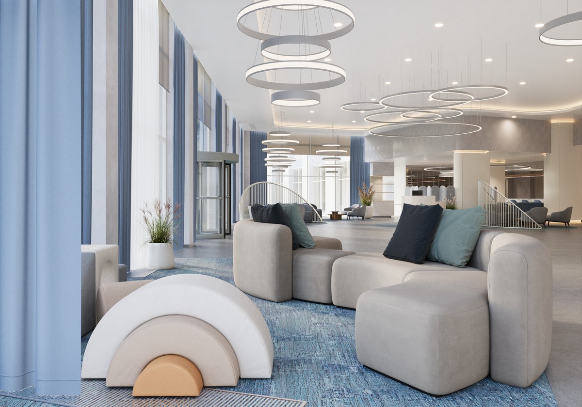 Одна из самых привлекательных «фишек» курорта в его – и то, о чем не писали в пресс-релизах - что гостиницы, аквапарк и конгресс-холл объединяет крытый переход. Так что из любого объекта в другой можно с комфортом пройти буквально в халате и тапочках. Также из любого «сектора» можно попасть на набережную с променадом. Дизайн отелей – от студии дизайна Sundukovy Sisters (S+S). Студия известна оформлением ряда российских гостиниц, в том числе для Accor.