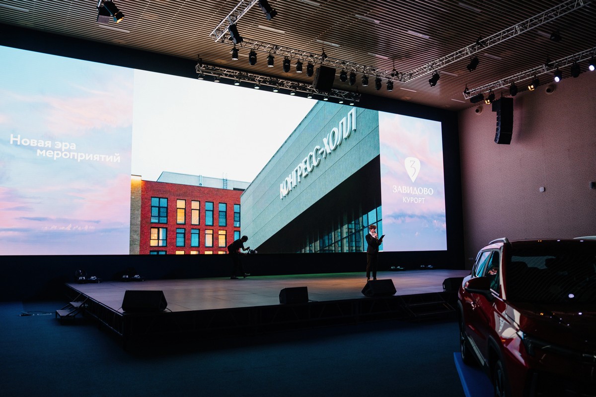 Конгресс-центр «Завидово Холл» был официально представлен в рамках события «Новая эра мероприятий». Крупнейший конференц-зал этого комплекса способен вместить до 1000 гостей единовременно в формате рассадки «театр», и даже до 1200 человек – в рассадке «фуршет». Более того зал позволяет демонстрировать крупную технику – он настолько просторен, что здесь легко помещаются в демо-зоне до шести автомобилей сразу (а один автомобиль, можно сказать, просто теряется в этих просторах). Экран – 21х7,5 м, общая площадь – 153,6 кв.м.  В конгресс-центре есть и 2 vip-ложи по 50 кв.м площадью, для приватных переговоров.