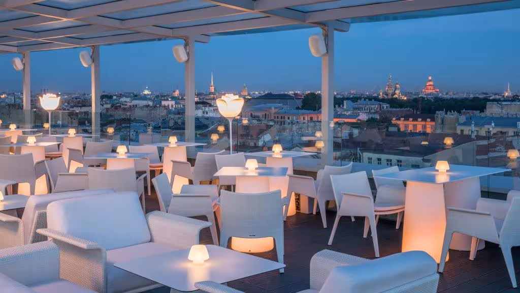 Скоро мы запустим летнюю террасу, сейчас мы работаем над тем, чтобы она могла работать с ранней весны до поздней осени. С террасы открывается великолепный панорамный вид города, и мы надеемся принять первых гостей на ней уже в апреле.