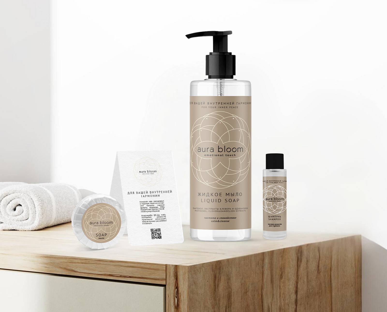 5. Дополнительные фишки. К примеру, в линейке Aura Bloom к продукции прилагается QR-код с уникальной музыкальной композицией. По QR‑коду гость попадает в короткий аудио‑ритуал, который помогает завершить день. Для отеля это готовый wellness‑сценарий без сложных интеграций: карточки и стикеры идут в комплекте с поставкой
