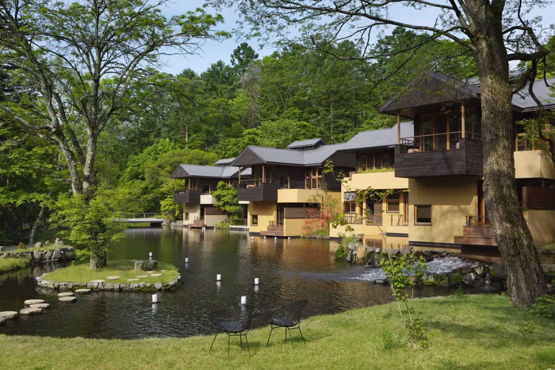 Отель Hoshinoya Karuizawa — Каруизава, Япония. Отель находится в японском провинциальном городке Каруизава, в часе езды от Токио. Электричеством отель обеспечивает гидроэлектростанция, в качестве источника энергии использующая энергию близлежащих горных рек, а точнее их быстрых водных потоков. Продукты, из которых готовят еду в ресторане отеля, выращены на местных фермах без использования пестицидов и вредных удобрений. Отель был построен в 2005 году, в соответствии с японскими архитектурными традициями. Это двухэтажное здание с номерами категории Suite. Всего в гостинице 7 двухместных номеров и 70 многокомнатных номеров (с раздельными комнатами). В каждом номере радио, CD-плейер, DVD-плейер, мини-бар. В отеле расположен оздоровительный центр, сауна и баня, ресторан и бизнес-центр, Wi-Fi в вестибюле отеля. Отель предлагает пешеходные и велосипедные туры по местности. Горы, реки и леса вокруг отеля оставляют неизгладимое яркое впечатление и, как нельзя лучше, способствуют единению с природой.