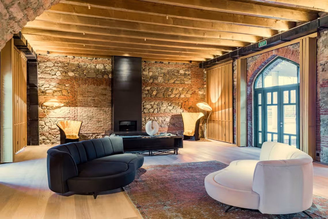 Над проектом отеля работали всемирно известные архитекторы Джон Фотиадис (John Fotiadis), Кристина Габас (Christina Gabas) и Дамьен Фигуэра (Damien Figueras). Потрясающий дизайн интерьеров был разработан известным во всем мире промышленным и светодизайнером Инго Маурером (Ingo Maurer) и грузинским художником и скульптором Тамарой Квеситадзе.