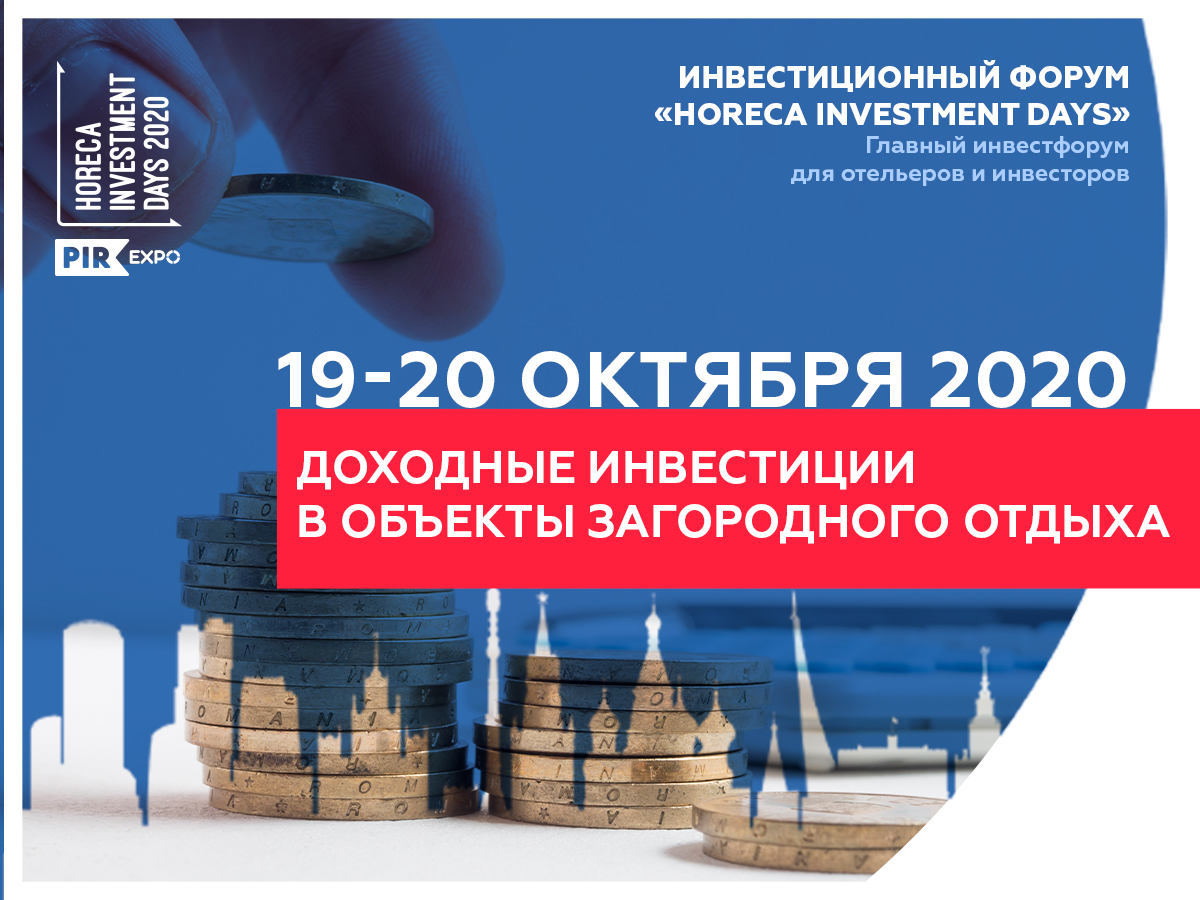19-20 октября в рамках главного всероссийского события индустрии гостеприимства RIR EXPO - 2020 на традиционной площадке “ПИР ОТЕЛЬ” пройдет масштабный инвестиционный Форум HORECA INVESTMENT DAYS: Доходные инвестиции в объекты загородного отдыха. Ключевые эксперты проанализируют основные тренды развития загородных отелей с точки зрения инвестиций, развития, экономии ресурсов и увеличения прибыли. Вместе с участниками форума подробно разберут наиболее интересные успешные кейсы по каждому из трендовых направлений развития и представят актуальные инвестиционные проекты.