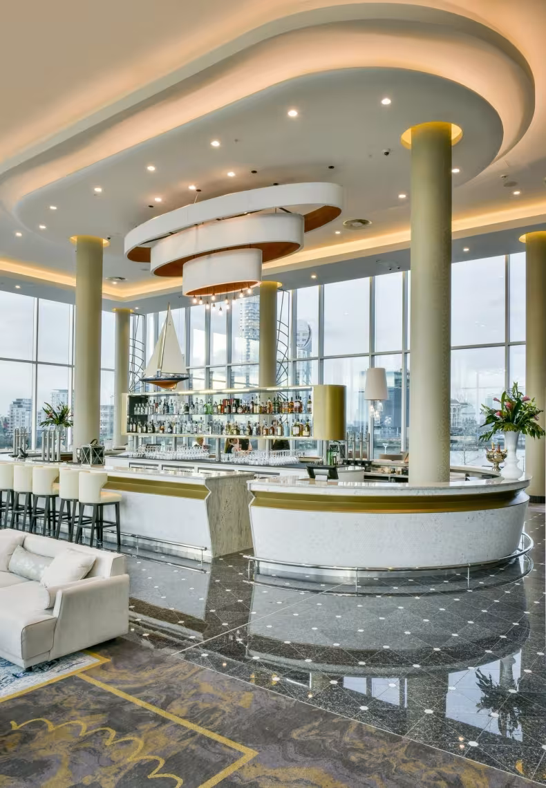 В конференц-центре расположен бальный зал без поддерживающих колонн площадью 3100 м2 (один из крупнейших в Европе), 19 переговорных комнат, подсобное помещение и фойе впечатляющих размеров (1300 м2), из которого открываются восхитительные виды на Канэри-Уорф.