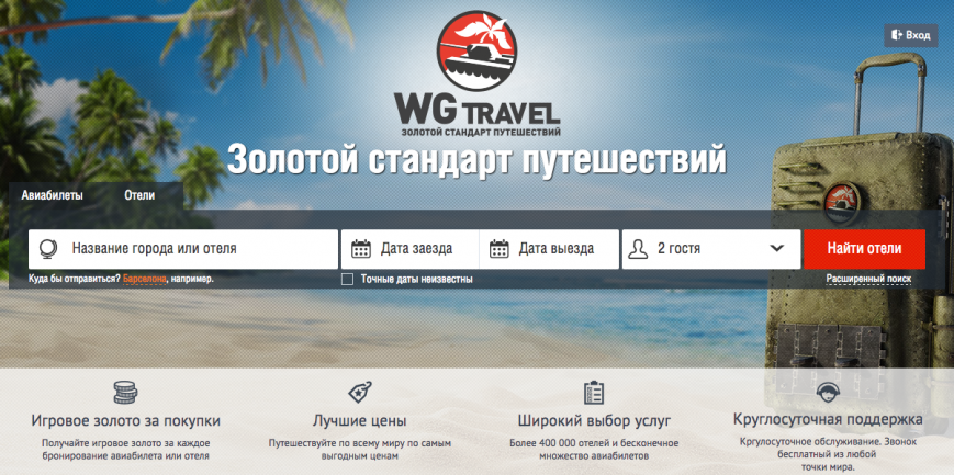 Компания Wargaming, создатель знаменитой игры World of Tanks, сообщил о запуске проекта WGtravel.ru. Изюминкой проекта стала возможность получать бонусы в виде игрового золота World of Tanks и World of Warplanes