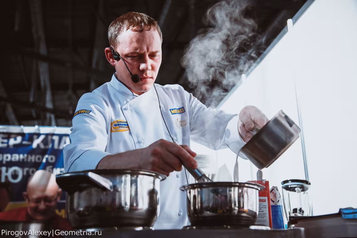 Параллельно с конференц-залами, работа кипела в зоне мастер-классов. Яркие, вкусные, эффектные блюда уральской и русской кухни в блестящем исполнении шеф-поваров — что может быть заманчивей?.. Десерты с клюквой, блюда уральских деревень, пельмешки с «секретом», кондитерские творения и прожаренные стейки! Настоящее испытание на силу воли — хочется всего и сразу!