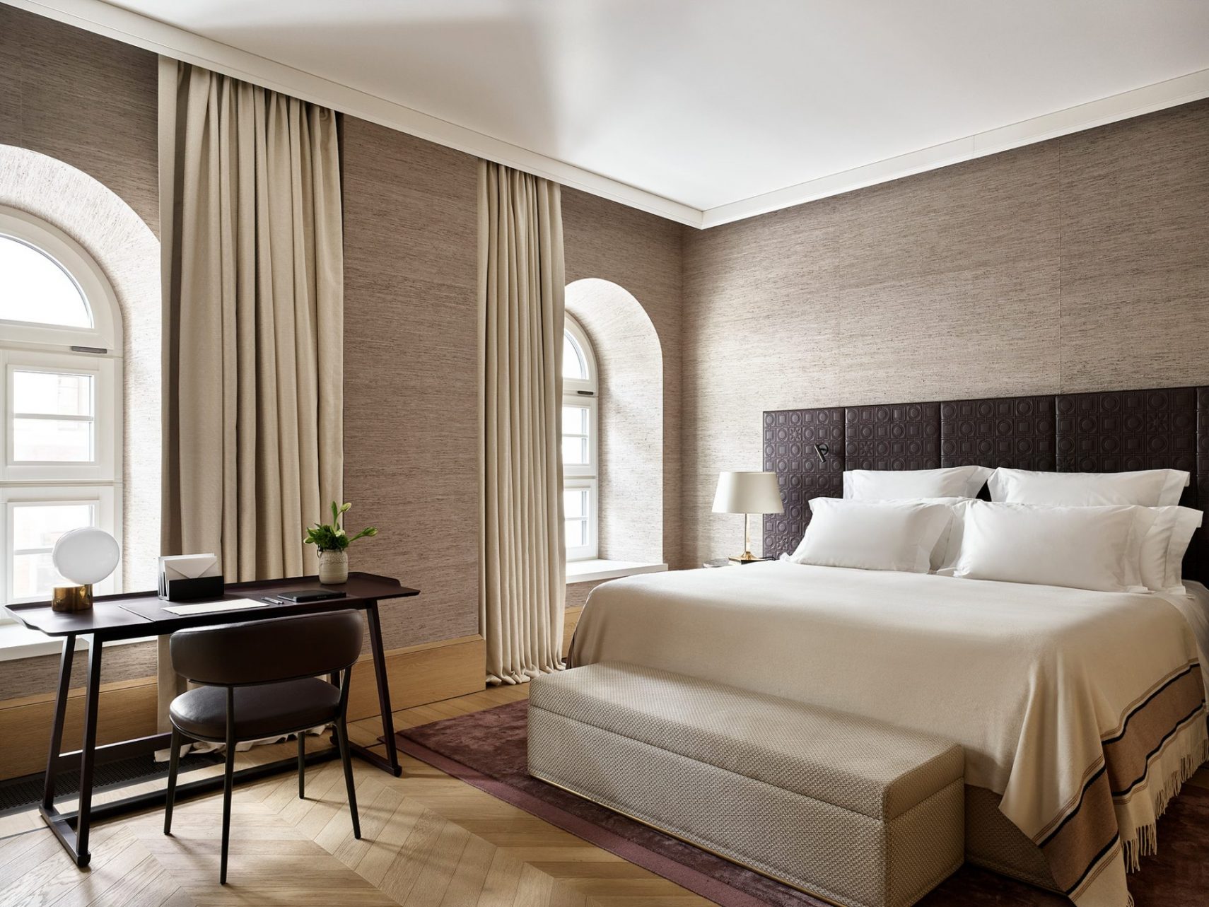 Визитная карточка отеля — президентский люкс, самый большой и великолепный номер. Его площадь составляет 255 кв. м и включает в себя лаундж-зону с биокамином, ванную комнату со стенами, отделанными ониксом приглушенного апельсинового оттенка, и пять террас с панорамным видом на город.
