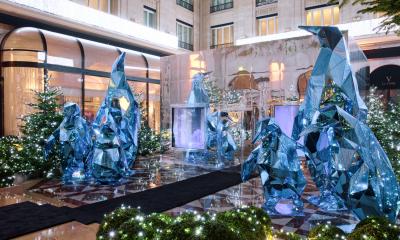 В новогодние и рождественские праздники мраморный двор отеля Four Seasons Hotel George V превратился в ледяную сказку, которую создал арт-директор отеля Джефф Литэм (Jeff Leathem)