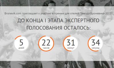 Стартовал заключительный этап отельной премии «Звезда Броневика-2015», организованной системой онлайн бронирования отелей Bronevik.com